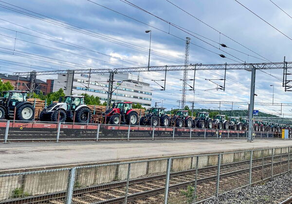 Wir fahren und arbeiten mit unseren Valtras in der Schweiz. Und wir wissen, dass die Traktoren in Finnland produziert werden. Doch was passiert dazwischen? Wie kommen die Maschinen zum Händler, wo schlussendlich die Schlüsselübergabe an den Endkunden stattfindet? Der Weg wird in mehrere Etappen unterteilt. Zuerst reisen die Traktoren vom Werk in Suolahti per Zug nach Helsinki. Praktisch täglich ist solch ein Transport auf den Schienen unterwegs.