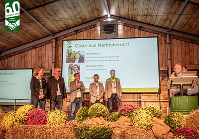 Après avoir accueilli les invités avec un apéritif, Ivo Fausch, directeur commercial, est revenu sur les moments forts de la collaboration et a présenté les principales évolutions de la gamme de produits au cours de ces six décennies. Michael Kern, chef des ventes Fendt, a fait le lien avec le présent et a présenté son équipe. Du côté de Fendt, les invités étaient entre autres le directeur des ventes Mel McClinchey, le directeur des exportations Christopher Ochs et le vice-président de la gestion des ventes Christian Erkens, qui ont remis ensemble un cadeau d'anniversaire à GVS Agrar AG et l'ont félicitée.